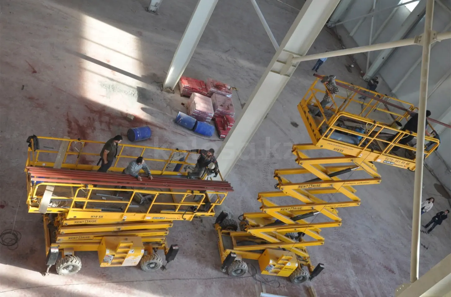 TOO "Aykar Group" предлагает в аренду спецтехнику: Самый высокий в раскрытом состоянии ножничный подъемник Haulotte H18 SX занимает достойное место среди лучших проектов французского производителя. Максимальная высота подъема платформы модели составляет 16 метров, а рабочая высота — все 18 метров! Грузоподъемность не отстает — машина способна выдерживать вес до 500 кг. На просторной платформе могут одновременно работать несколько человек. Технические характеристики: Макс. Рабочая высота, м 18 Макс. Грузоподъемность, кг 500 Тип двигателя Hatz 31.4 hp — 23.1 kW Макс. Габариты платформы (с выдвижными секциями), м 6 x 1.89 Время подъема/опускания платформы, сек 60/60 Вес подъемника, кг 7240 Длина подъемника, м 4.18 Ширина подъемника, м 2.25 Макс. Высота платформы, м 16 Высота в транспортном положении (с ограждением), м 2.99 Длина платформы, м 4 Ширина платформы, м 1.89 Длина выносной секции платформы, м 1 Скорость движения, км/ч 1.6 — 6 Максимально допустимый уклон,% 45 Внешний радиус поворота, м 4.96 Колесная база, м 2.75 Дорожный просвет, см 35 Тип шин 10 x 16.5 Объем гидравлического бака, л 100 Объем топливного бака, л 65